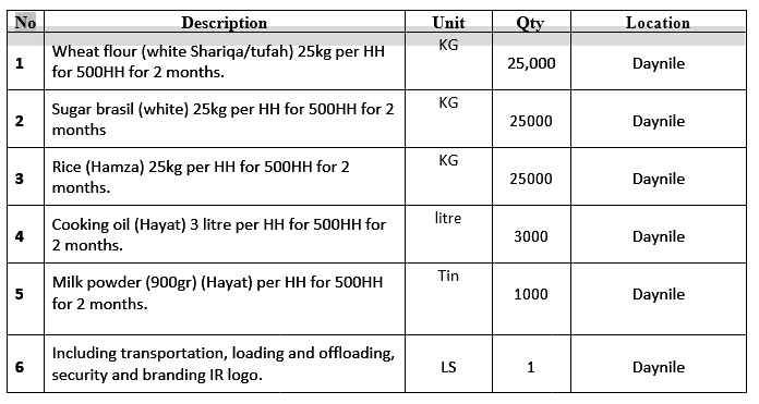 TENDER No: IRS/PR-15004/Food packs Distribution/Daynile/s-MaCS/2022