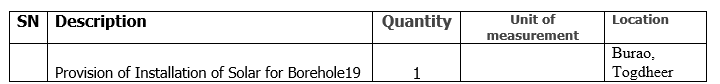 Provision of Installation of Solar for Borehole19 In Burao- Togdheer-Somaliland